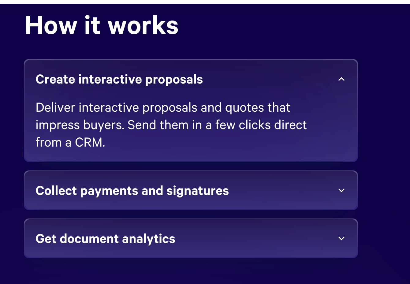 Use Qwilr’s tiered pricing to anchor strategy as a middle or top-tier option. Clients see what’s missing if they choose “words only” (and often self-upgrade!)